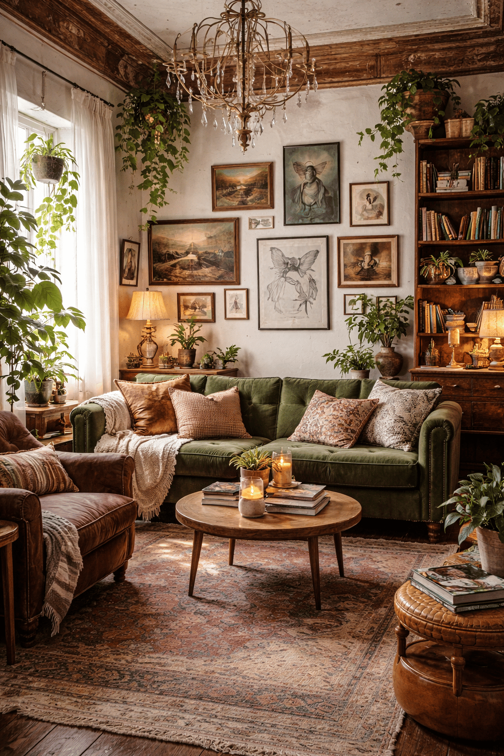 Art plays a central role in maximalist design. Gallery walls filled with diverse pieces—vintage portraits, contemporary paintings, travel finds, and heirlooms—form the emotional core of the space. There is no hierarchy between old and new; instead, contrast becomes a design tool. The result is a visual narrative that reflects identity rather than trend.